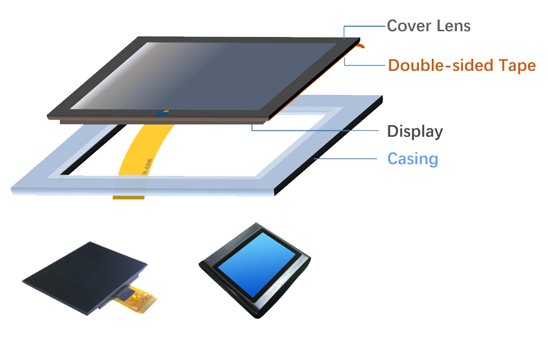 - Harder Processing (hard to hold frame tape) We can also pre-apply double-sided tape (waterproof if necessary) to the back of the laminated cover glass, allowing assembly workers to easily secure the cover glass to the final product.